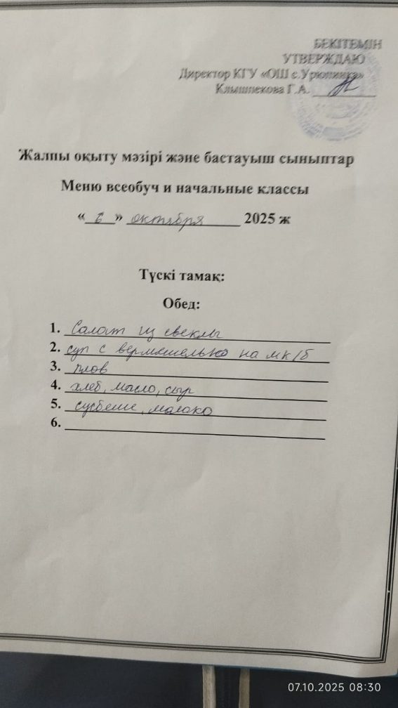 2025 жылғы 06 қазанның мәзір