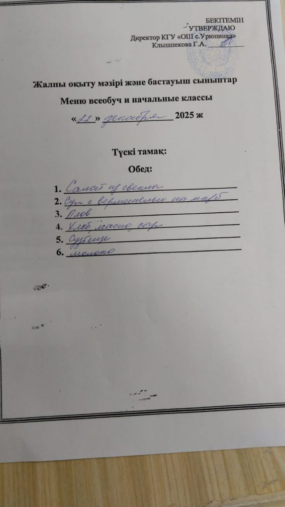 2025 жылғы 22 желтоқсандағы мәзір