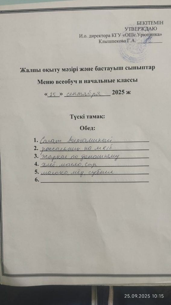 2025 жылғы 25 қыркүйекке мәзір