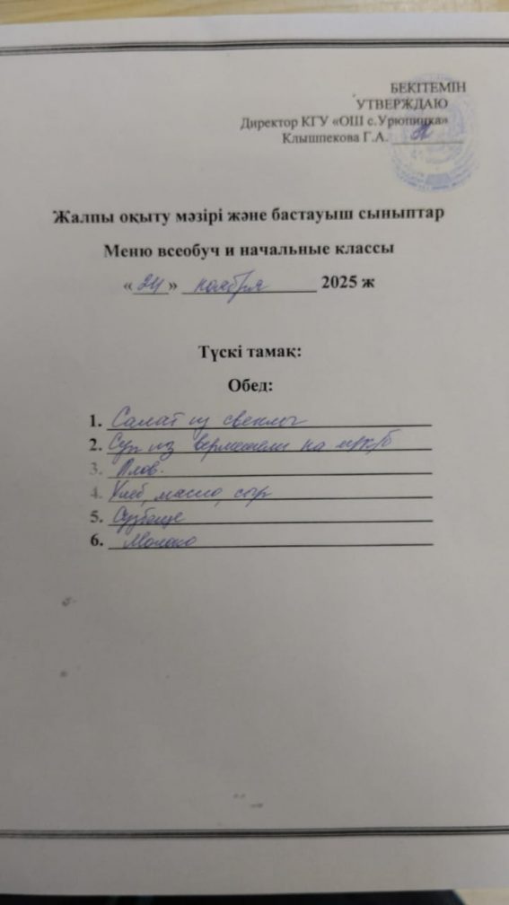 2025 жылғы 24 қарашаның мәзір
