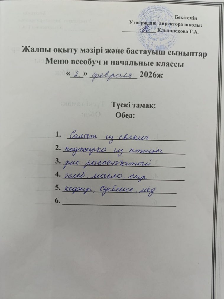 2026 жылғы 02 ақпандағы мәзір