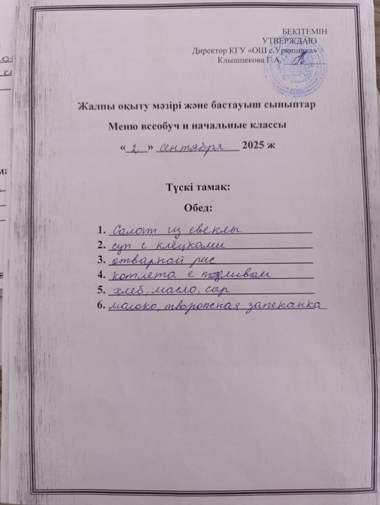 2025 жылғы 02 қыркүйекке мәзір